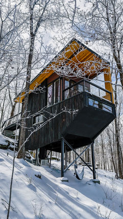 Take it easy at this unique and tranquil getaway. Remember as a child playing pretend in your tree house. Come and stay in an adult version Tree Loft! Escape your life and get lost in the woods. Accommodations include one queen-size bed, one full-size bed, one twin bed, and one sleeper sofa.